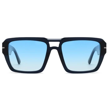 Customized Logo Double Bridge Acetate Large Frame Sunglasses Trendy Sunlight Blocking UV Protection with Solid Pattern